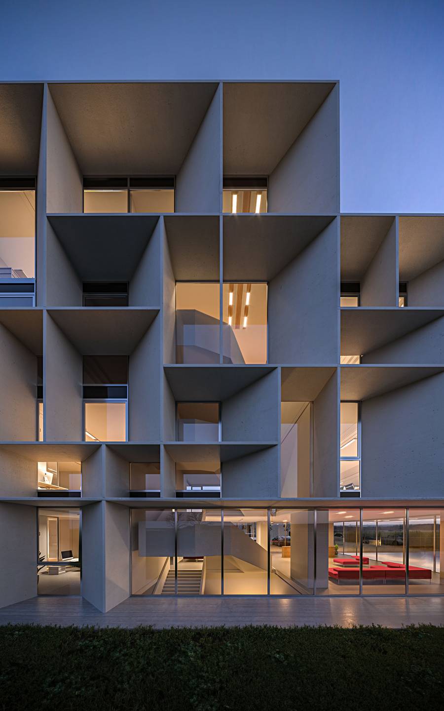 The project is characterized by reduced geometry, precise architectural lines and a carefully designed lighting concept. The visualizations communicate not only architectural quality but also the identity of a company that represents innovation and engineering expertise.
