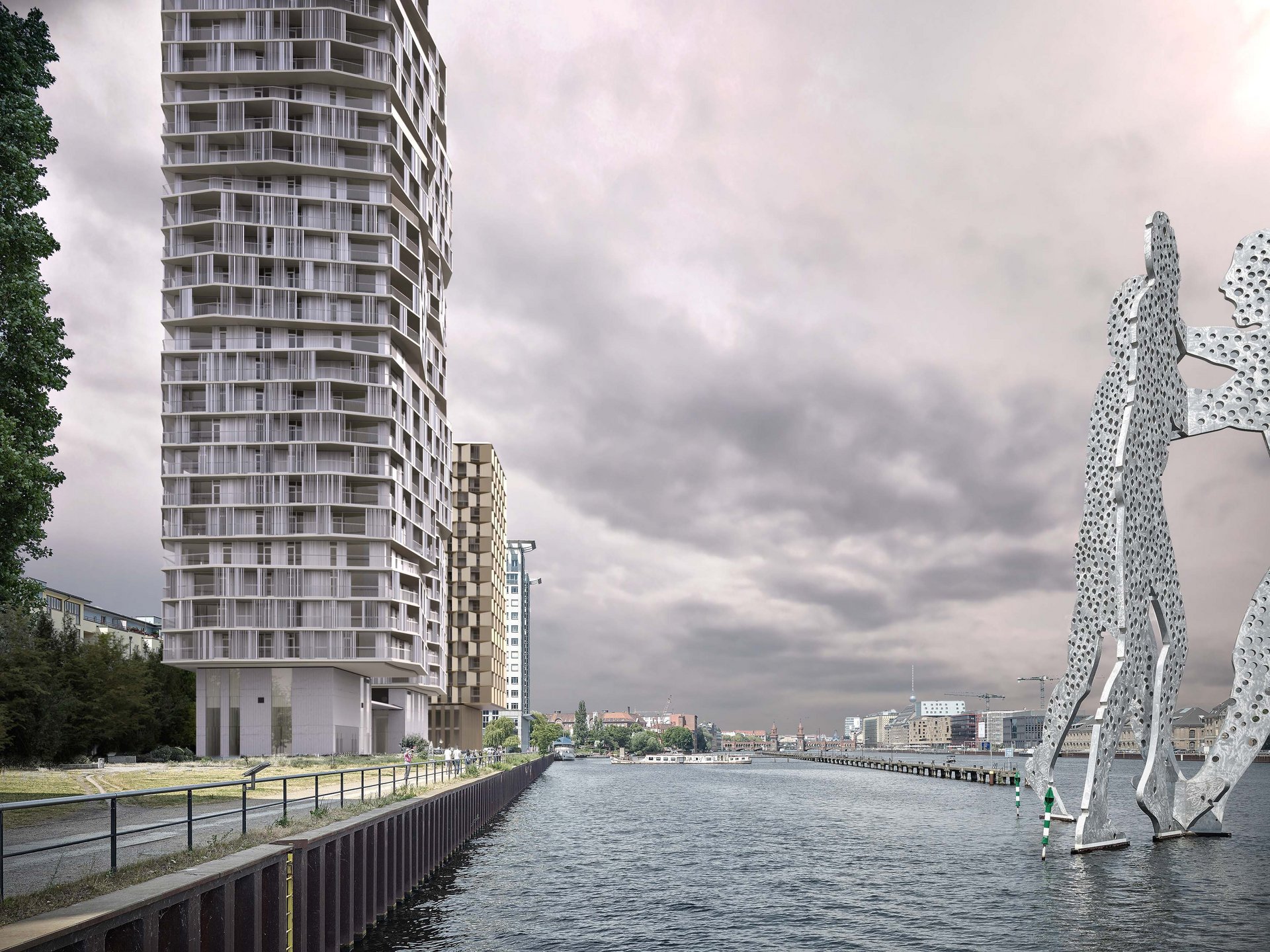 The project video presents the site with dynamic camera movements, highlighting the residential towers, hotel tower, open spaces, and direct access to the River Spree. With the help of real film sequences, an audiovisual overall picture was created that vividly conveys the architecture, the quality of the location, and the urban lifestyle.