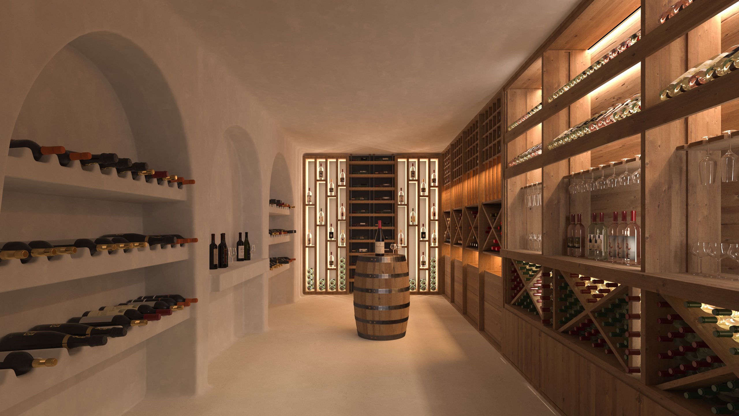 The villas impress with hand-shaped walls, rounded corners, and flat roofs, which emphasise the interplay of light and shadow. Spacious outdoor areas with covered terraces, light wells, and patios create a harmonious living environment that celebrates outdoor life.
